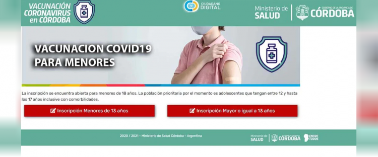 El gobierno de Córdoba habilitó la posibilidad de que cualquier menor de 18 años pueda inscribirse para recibir su vacuna contra el Covid 19. Si bien por el momento sólo se están otorgando turnos para aquellos que tengan de 12 a 18 y padezcan alguna comorbilidad, cuando este grupo termine su inmunización se citará al resto para que sea inoculado.