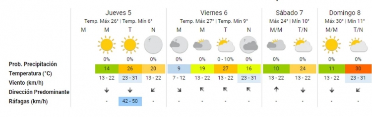 El viento norte hace su parte. De hecho se prevén ráfagas de hasta 50 kilómetros por hora.