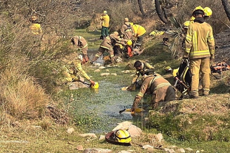 Tan árido está la zona desde hace meses que no hay a la vista ni una aguada, ni una vertiente, ni mucho menos un arroyo, lagunilla, o algo que se le parezca. Ni siquiera el pronóstico pareciera ofrecer en el corto plazo un respiro con alguna lluvia, que gasta los bomberos marcan como imprescindible para poder parar las llamas.