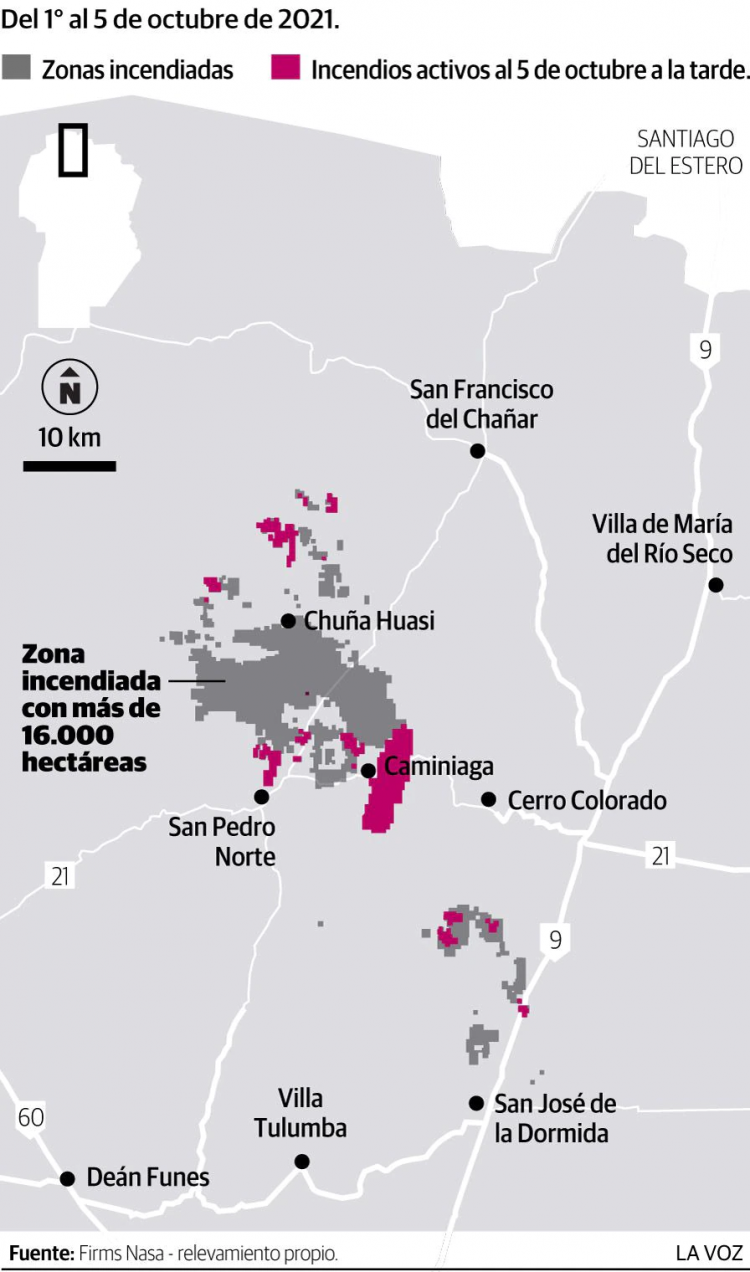 Un recorrido de más de 250 kilómetros por el norte cordobés, entre diferentes focos de incendios, permite tomar dimensión de la magnitud de los daños y, paralelamente, de la soledad en la que sufren y luchan los moradores de decenas de parajes frente a un fuego que va y viene a su antojo, sin que puedan atajarlo, y una sequía que acentúa todo.